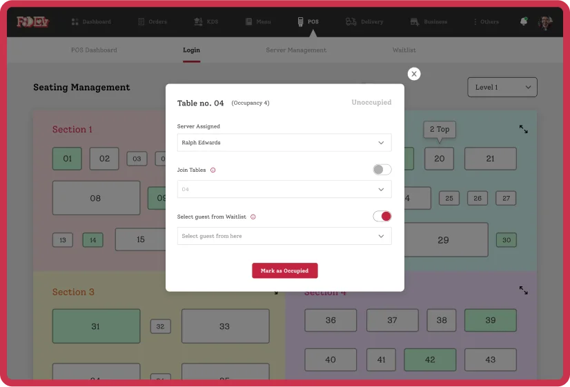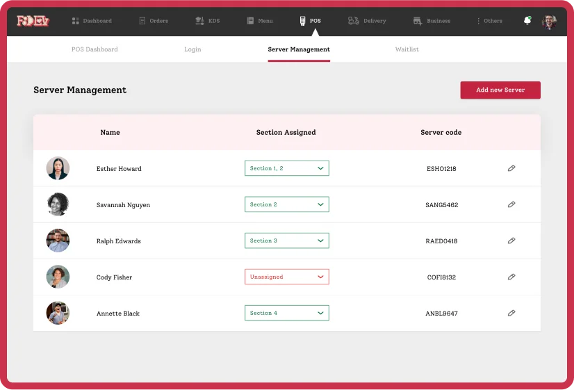 Empower your hosts with the ability to assign sections to servers effortlessly. Optimize the distribution of tasks, streamline service, and enhance the dining experience for every guest.