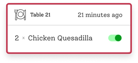 Seal the deal with confidence. Mark orders as prepared with a simple Toggle, guaranteeing that each dish is ready for service.