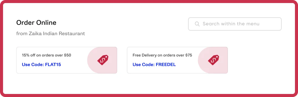 Maximize your restaurant's visibility with various marketing strategies. Run daily deals on marketplaces, secure a spot on the sponsored restaurant list, and showcase discount banners on your menu page. Your restaurant's growth is just a click away.
