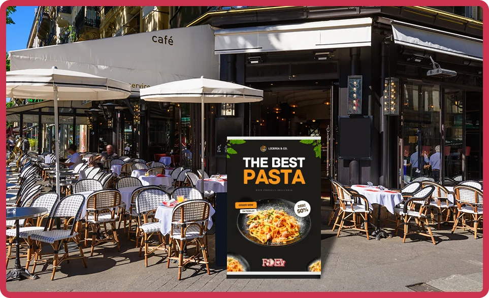 Turn heads and attract crowds with custom standees. Our tool helps you design eye-catching visuals that speak to potential customers, making your restaurant impossible to ignore.