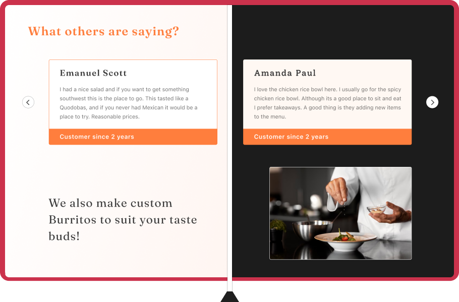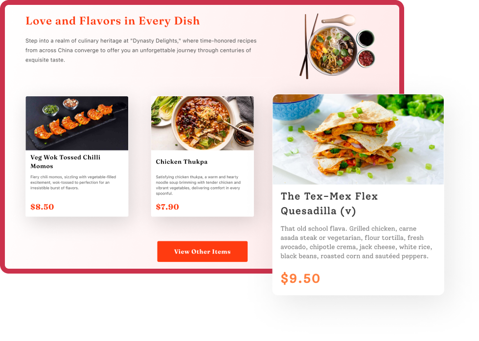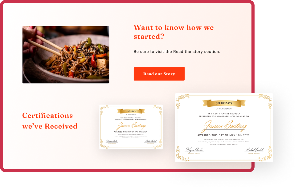 Tell your restaurant's unique story and showcase your achievements with ease. Create a website that truly reflects your passion for food.